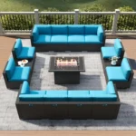 Transform your backyard or patio with this 15-piece outdoor furniture set. Featuring a wicker rattan sectional sofa, coffee table, and built-in fire pit table, it’s perfect for entertaining or relaxing outdoors. Made from durable, weather-resistant materials, the set combines comfort, style, and functionality. Spacious and elegant, it creates a cozy, inviting space for family gatherings, parties, or quiet evenings under the stars.