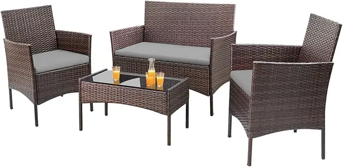 Elevate your outdoor living with this 4-piece rattan patio furniture set. Crafted with durable wicker and designed for comfort, it’s perfect for backyard, porch, garden, poolside, or balcony use. Lightweight yet sturdy, the set provides stylish seating for relaxation, dining, or entertaining guests. Weather-resistant and versatile, this patio set combines modern design with long-lasting functionality, enhancing any indoor or outdoor space.