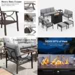 Transform your outdoor space with this 8-piece patio furniture set featuring a 43-inch fire pit table. The metal sectional includes comfortable cushions for lounging and entertaining, making it perfect for gardens, balconies, decks, or backyards. Durable, weather-resistant construction ensures long-lasting use, while the fire pit adds warmth and ambiance for cozy evenings. Stylish, functional, and inviting, this set creates the ultimate outdoor gathering space.