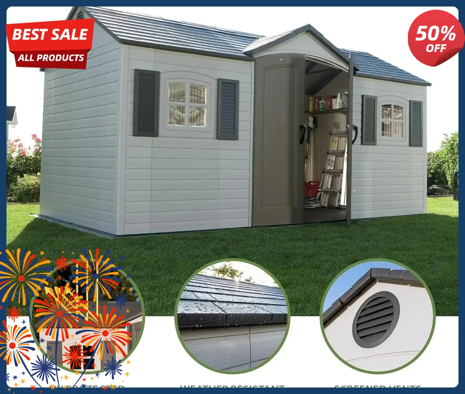 Securely store your tools, equipment, and outdoor essentials in this 8×15-foot garden shed. Featuring a heavy-duty metal frame with waterproof and UV-resistant panels, it’s built to withstand the elements while protecting your belongings. The spacious interior provides ample storage for gardening supplies, bicycles, and more. Durable, practical, and easy to assemble, this shed is a reliable solution for keeping your backyard organized and clutter-free.