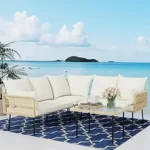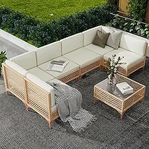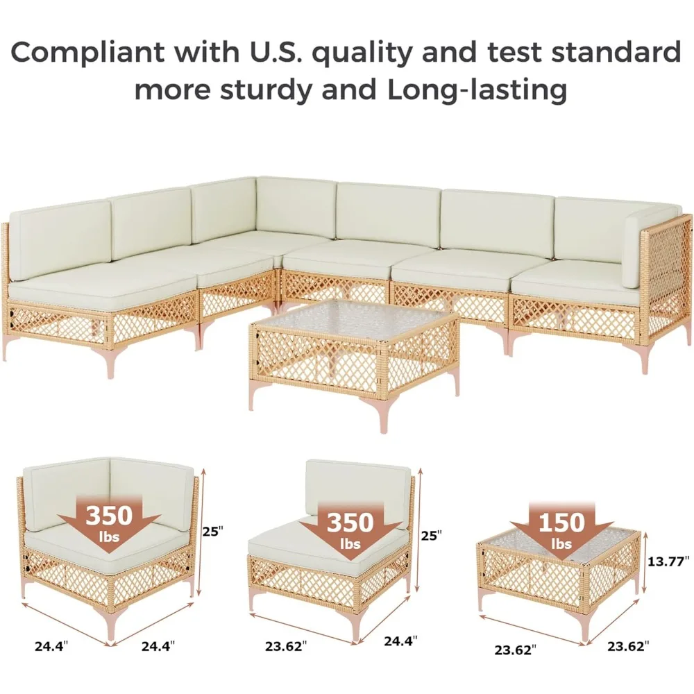 Elevate your outdoor living with this boho-style wicker patio sectional set. Featuring a spacious sectional sofa and a large tempered glass coffee table, it’s perfect for lounging, entertaining, or enjoying outdoor gatherings. Crafted from durable, weather-resistant materials, the set withstands the elements while offering comfort and style. Ideal for patios, gardens, balconies, or poolside spaces, this sectional combines modern design, functionality, and cozy outdoor elegance.