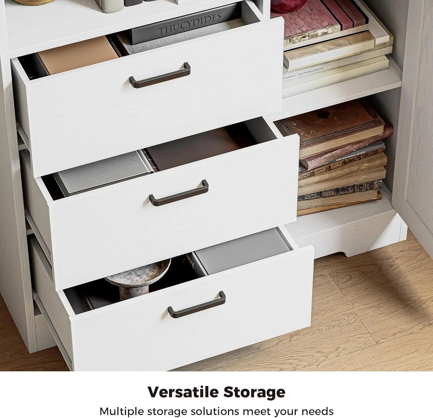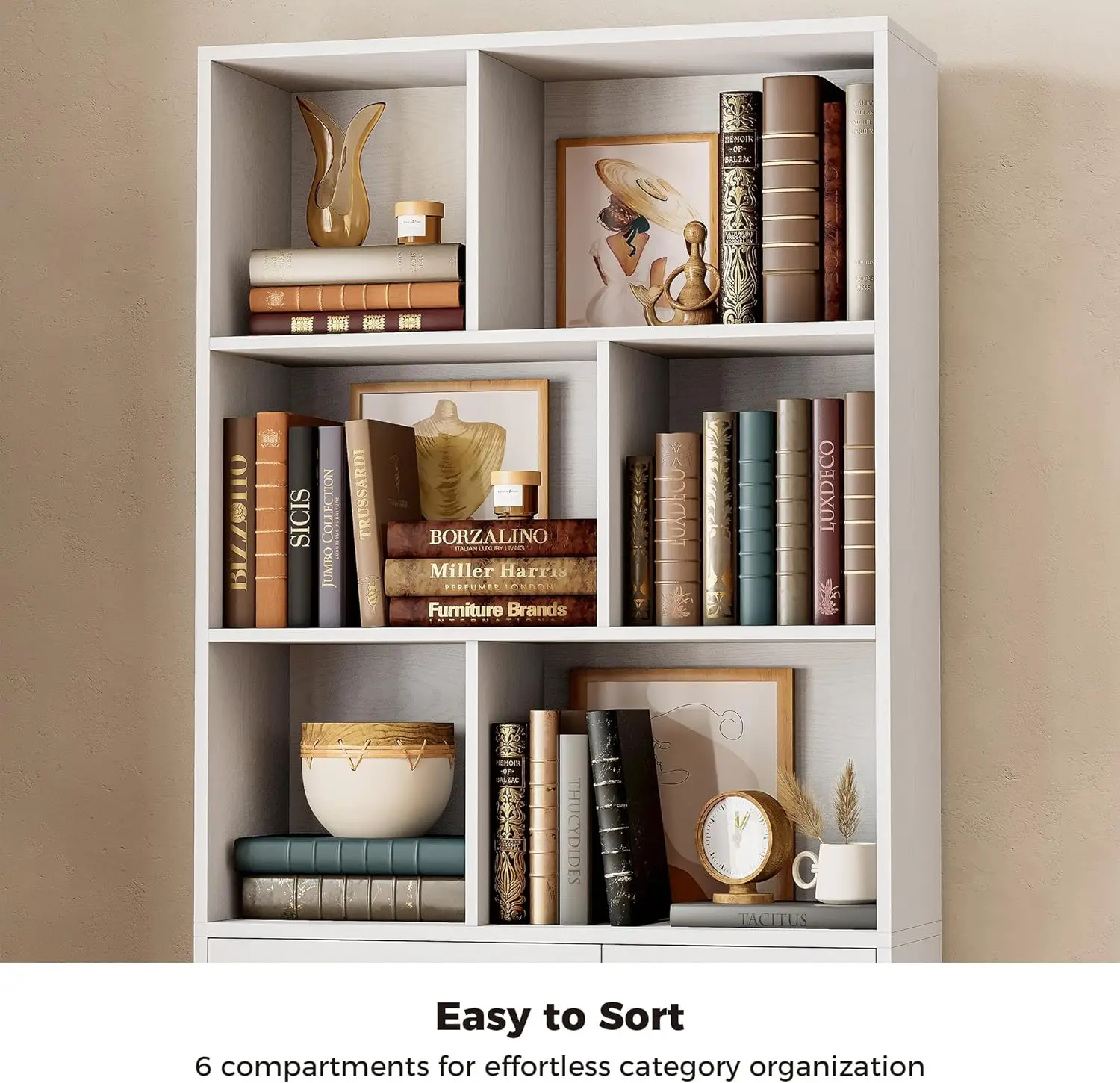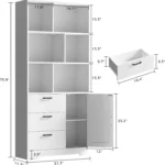 Organize and display your books and décor with the IRONCK 70.9-inch tall bookshelf. Featuring six open cubes and multiple drawers behind doors, it provides versatile storage for home offices, living rooms, or bedrooms. The sturdy construction ensures durability, while the sleek design blends functionality with modern style. Perfect for keeping books, accessories, and essentials neatly arranged, this bookshelf combines practicality and elegance in one space-saving piece.
