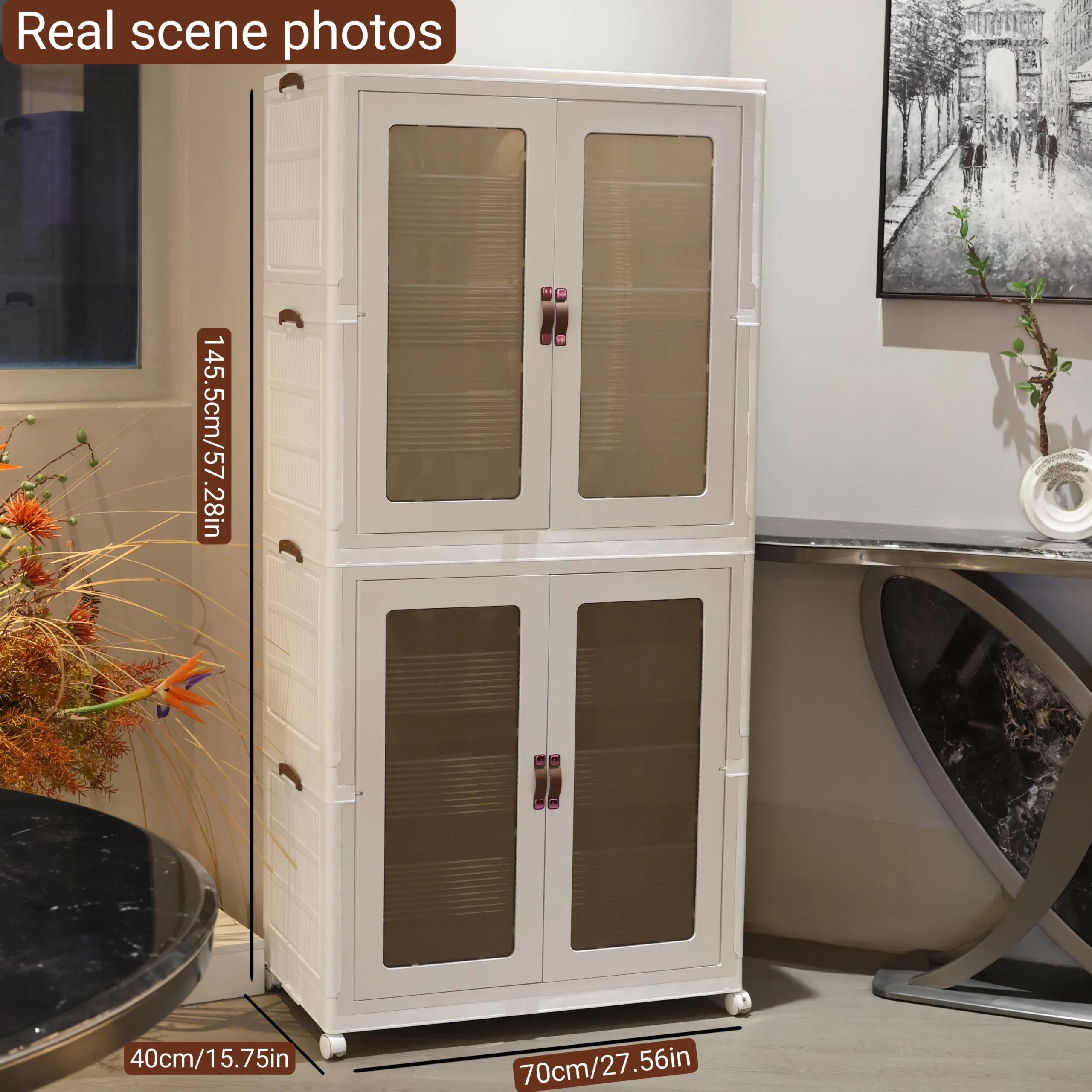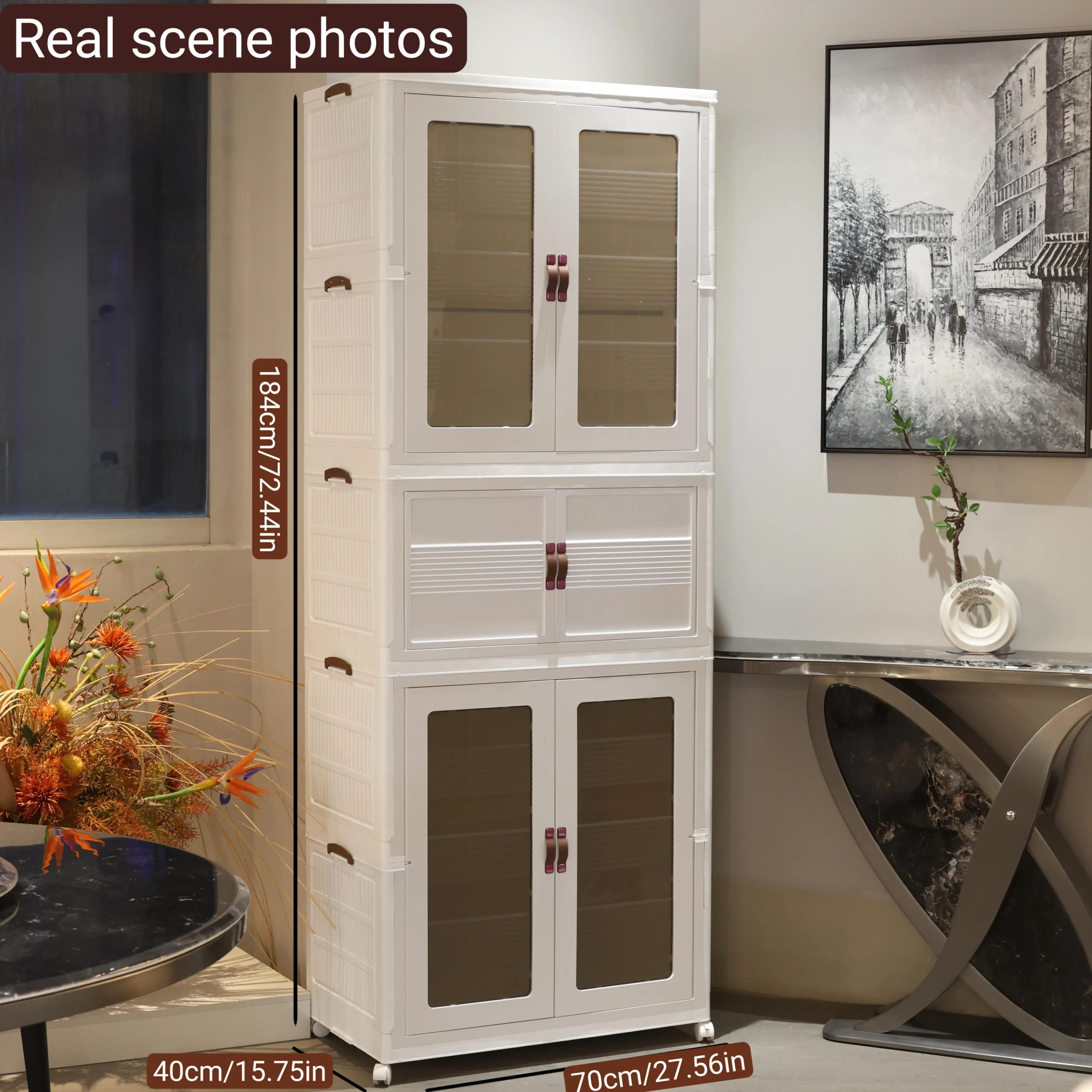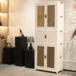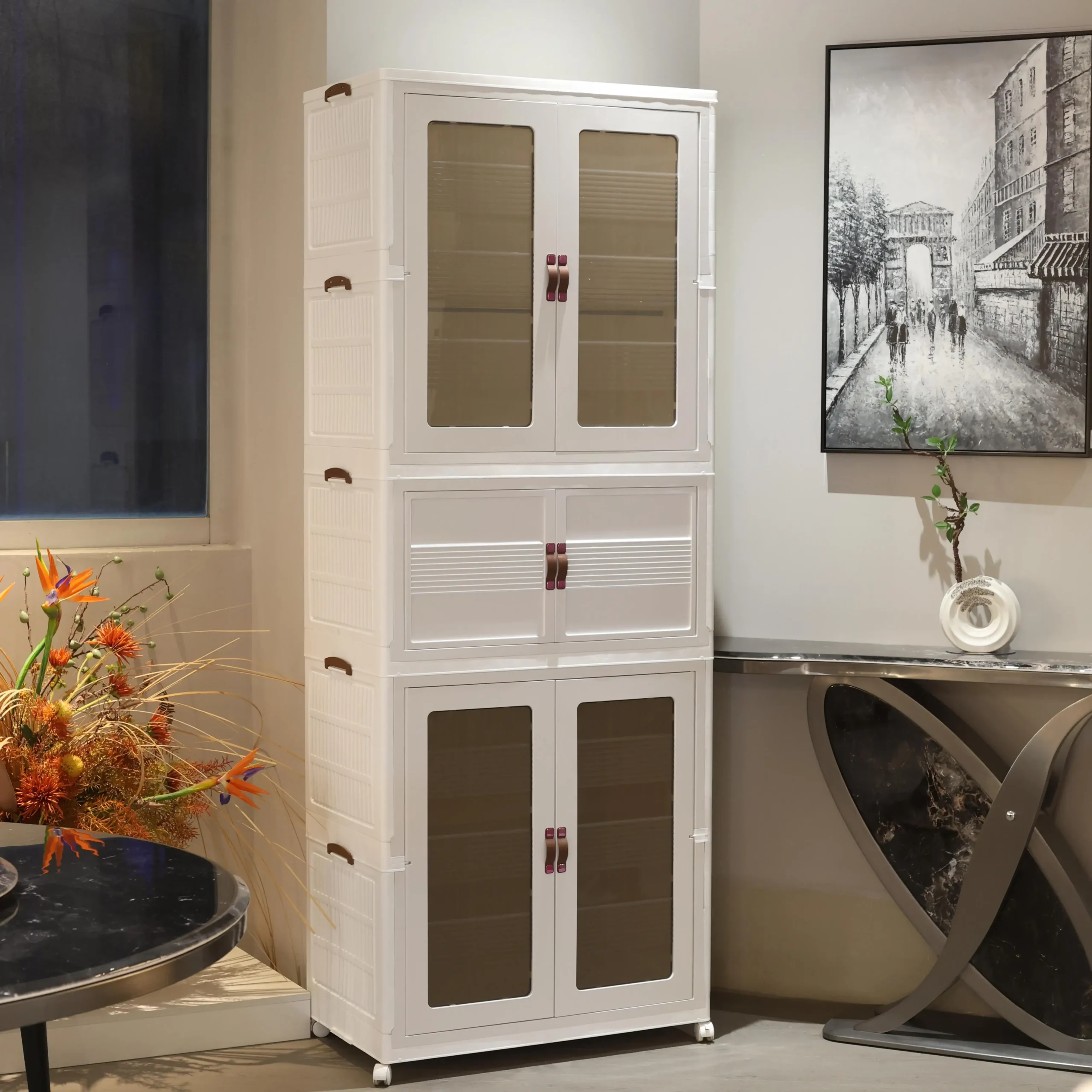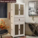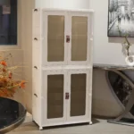 Keep your home organized with this stackable storage cabinet featuring transparent doors and smooth-rolling wheels. Multi-layer design provides ample space for toys, clothes, and household items while allowing easy visibility of contents. The durable construction and mobility make it perfect for living rooms, bedrooms, or playrooms. Practical, versatile, and space-saving, this cabinet combines convenience and style for efficient home storage.