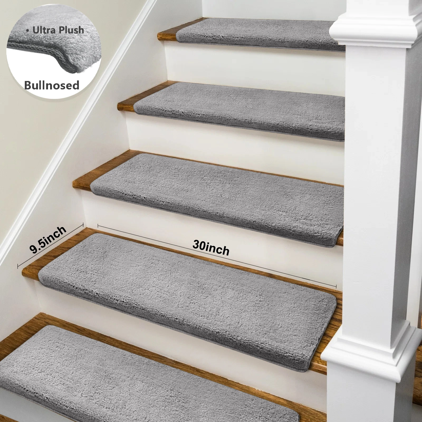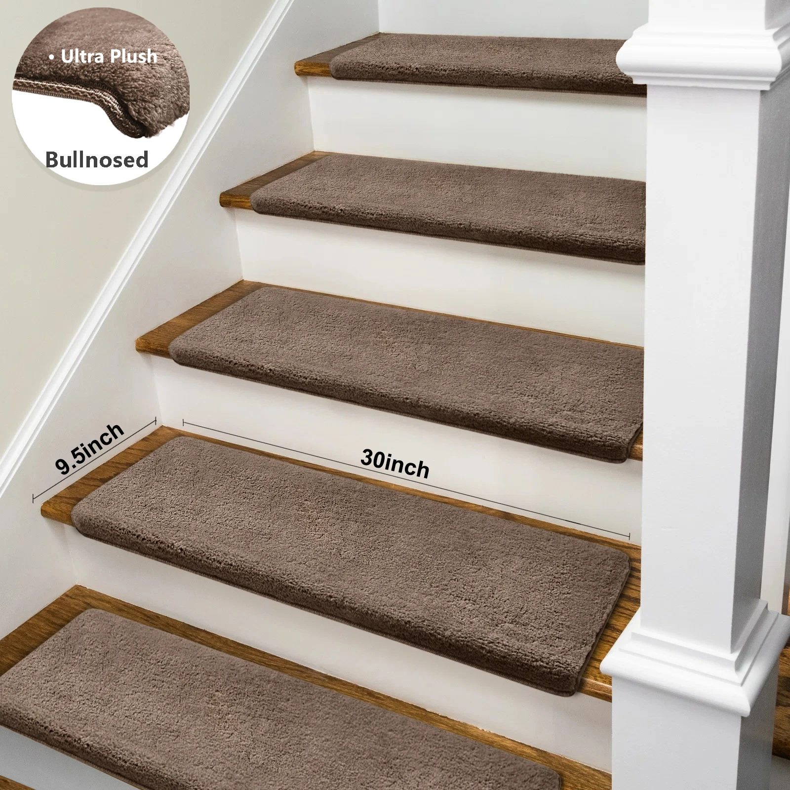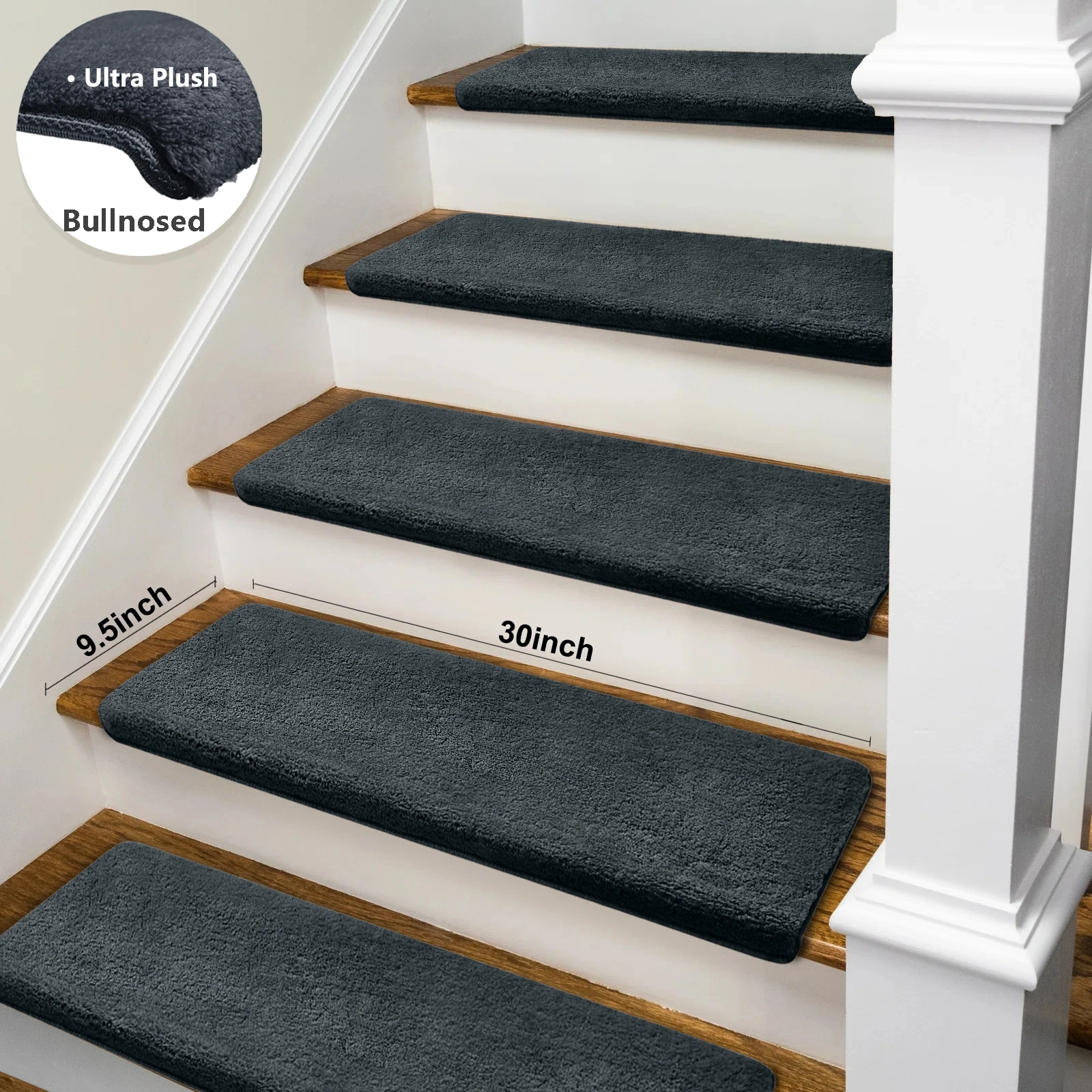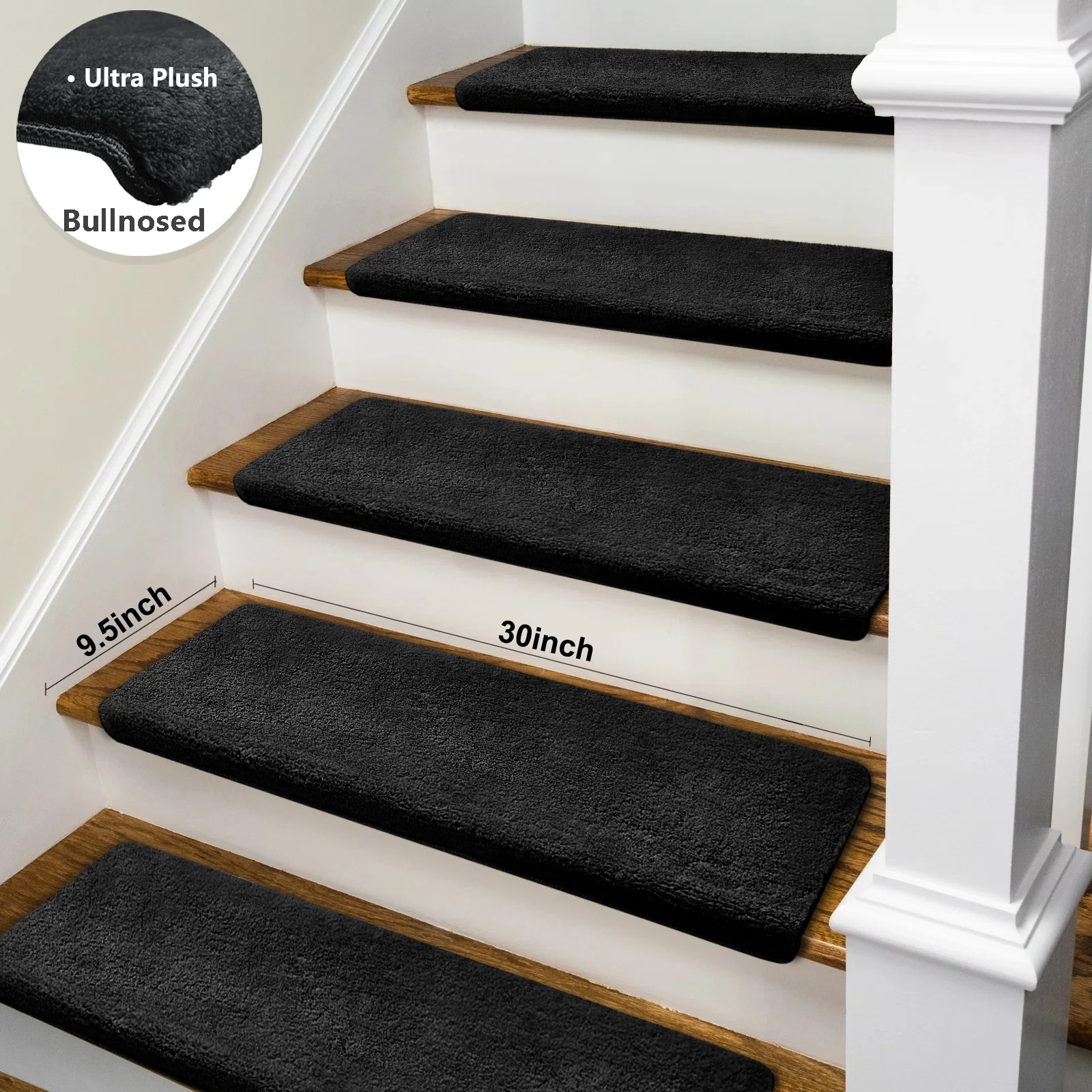 Enhance safety and comfort on your stairs with these ultra-plush bullnose stair treads. Designed with a non-slip, washable surface, they provide secure footing for the elderly, children, and pets. The self-adhesive peel-and-stick design makes installation quick and easy, while the soft, durable carpet adds warmth and style to any staircase. Perfect for home safety and décor, these treads combine practicality with cozy comfort.