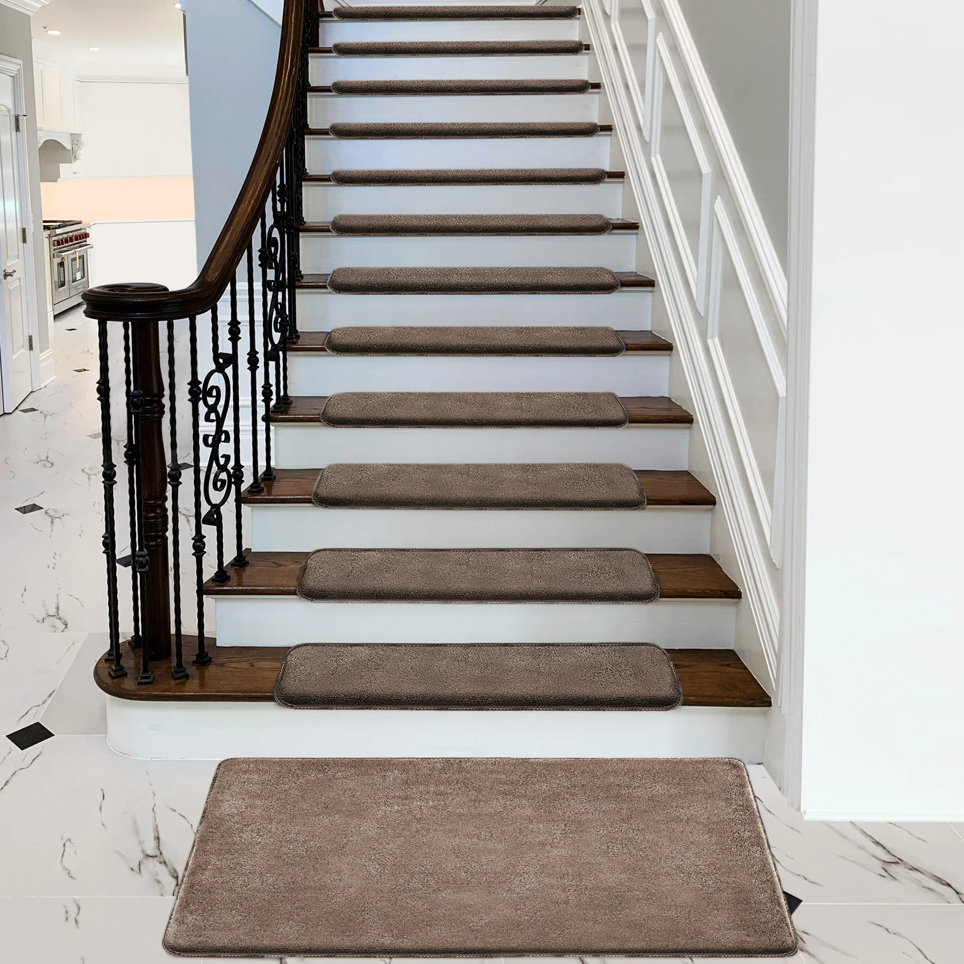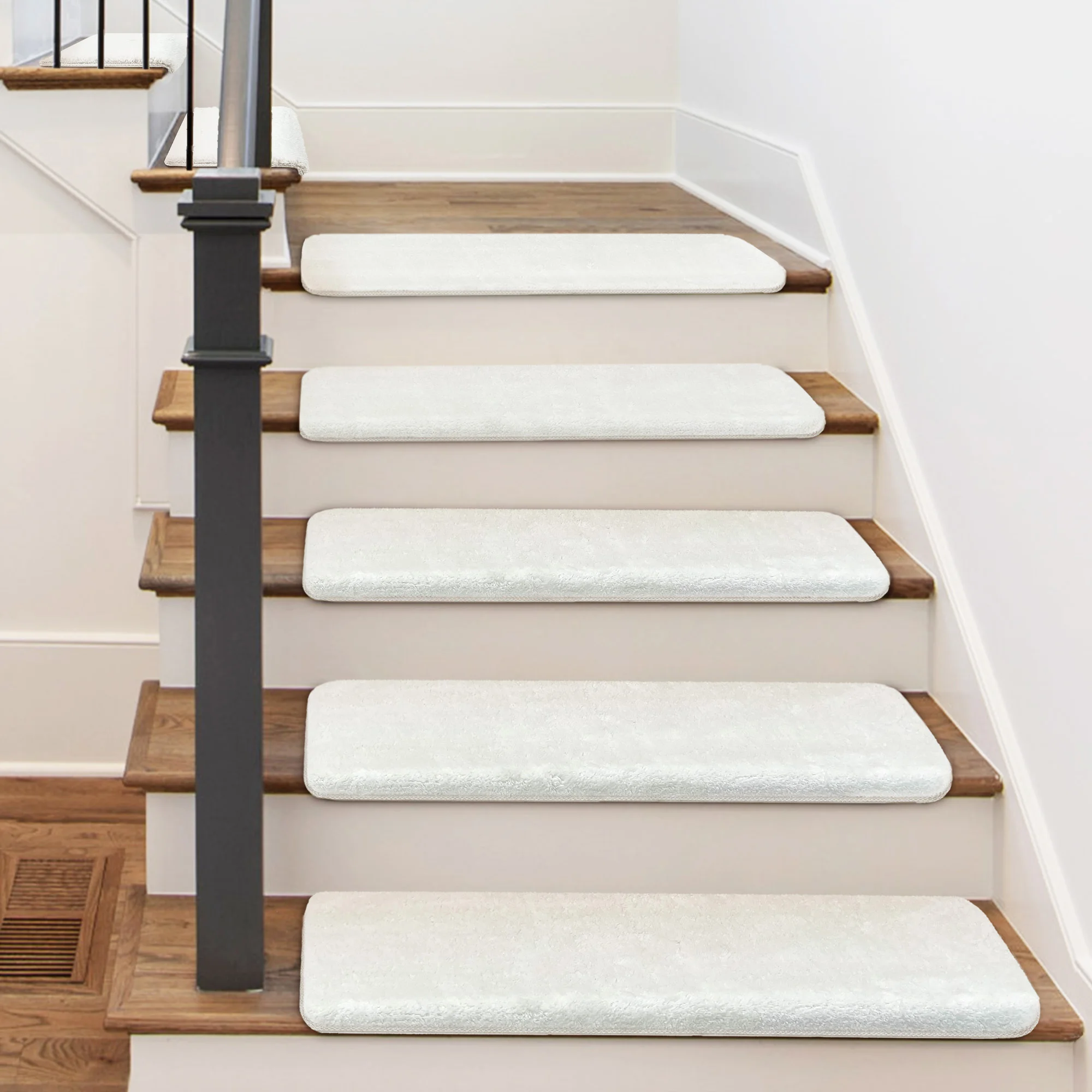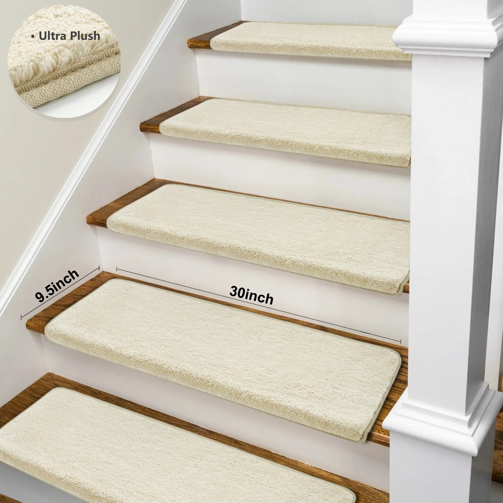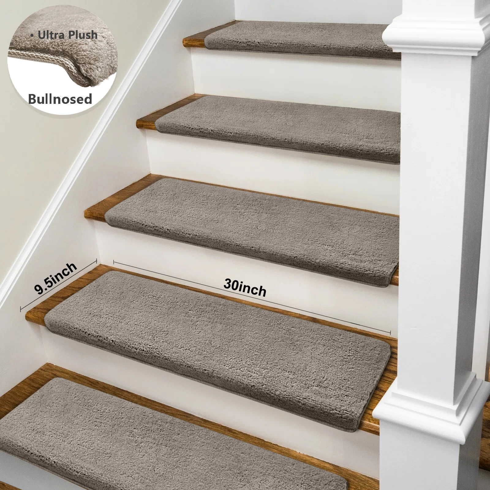 Enhance safety and comfort on your stairs with these ultra-plush bullnose stair treads. Designed with a non-slip, washable surface, they provide secure footing for the elderly, children, and pets. The self-adhesive peel-and-stick design makes installation quick and easy, while the soft, durable carpet adds warmth and style to any staircase. Perfect for home safety and décor, these treads combine practicality with cozy comfort.